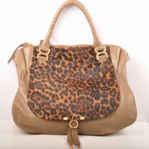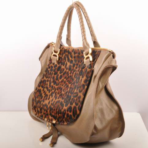 Chloe Marcie Large Shoulder Bag Brown Horsehair 90363 Khaki