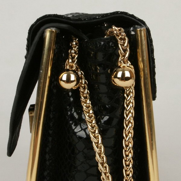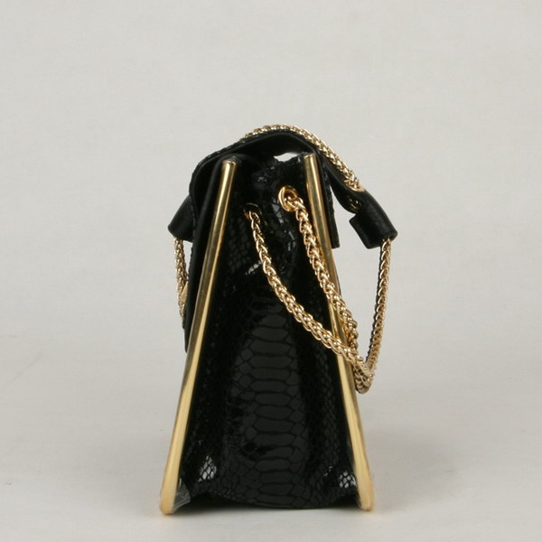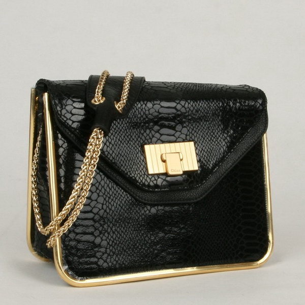 Chloe Sally Shoulder Bags Snake Veins Leather Black 508914