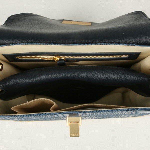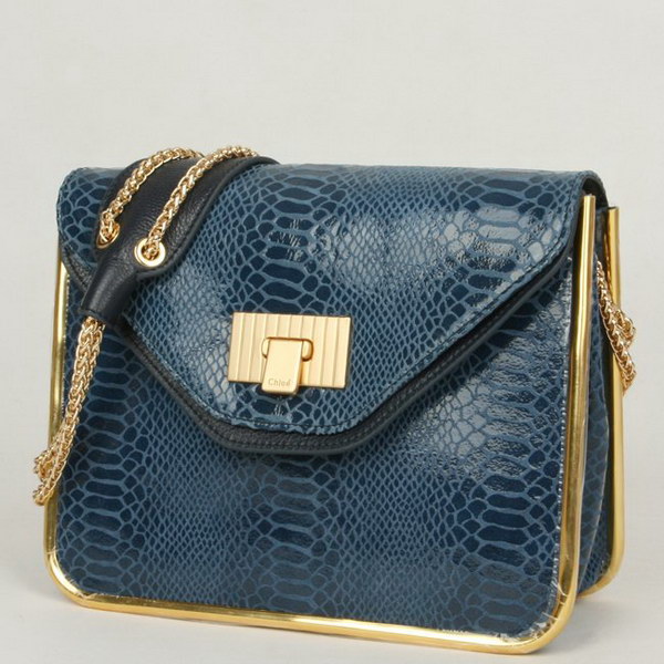Chloe Sally Shoulder Bags Snake Veins Leather Blue 508914