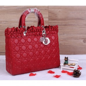 Christian Lady Dior Bag Medium Bag Sheepskin Leather D1667 Red