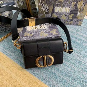 The 30 Montaigne line, inspired by the historic, emblematic address, presents essential pieces that portray the iconic codes of the House. This compact handbag is crafted in denim box calfskin for an elegant and timeless look. A flap closure is finished with a unique, shiny antique gold 'CD' clasp, inspired by the seal of a Christian Dior perfume bottle. Meticulous details like the embossed '30 Montaigne' signature on the back and the military-inspired buckle enhance the design.