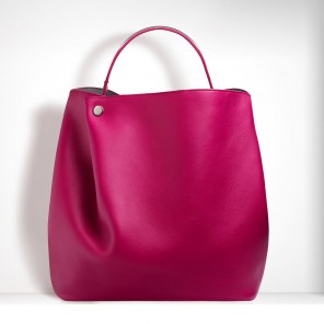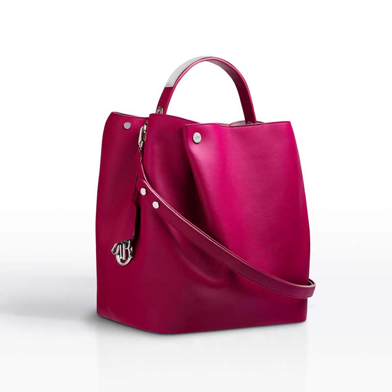 The "Diorific" line, revealed at the Spring-Summer 2014 show, expresses the creativity of Dior. This asymmetrical and modern bucket bag is inspired by the drapes from the Couture collection. The highly feminine Toxic Purple colour enhances the incredibly supple and sensual smooth pearlised calfskin. It offers the freedom of choice to carry it with the metal handle or the shoulder strap.