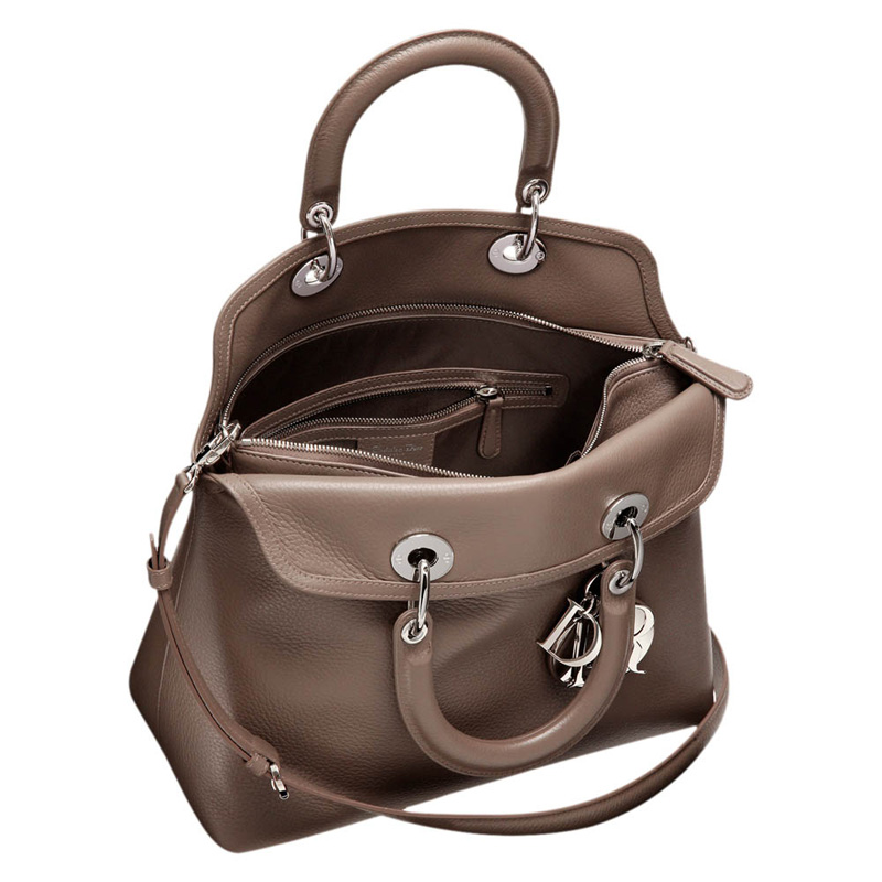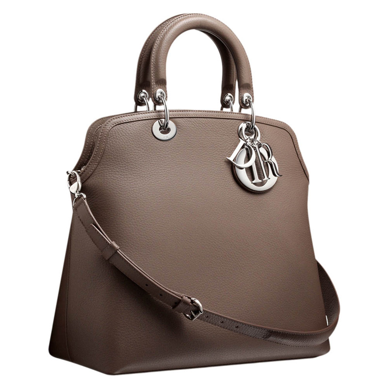 The model in dove grey deerskin leather can be worn with a strap or carried by hand for a casual chic look.