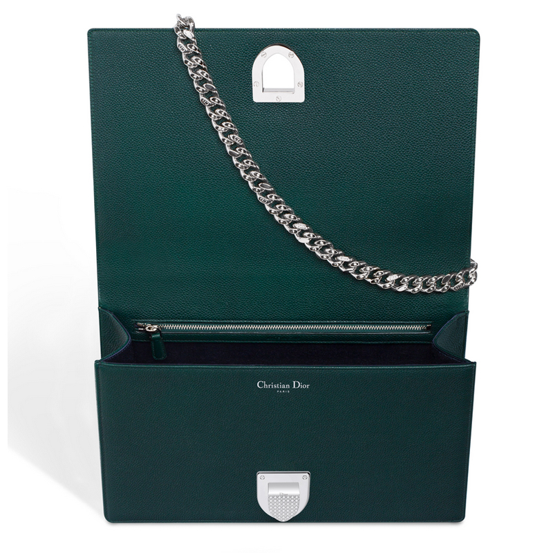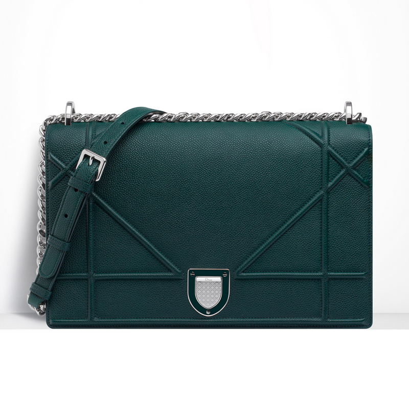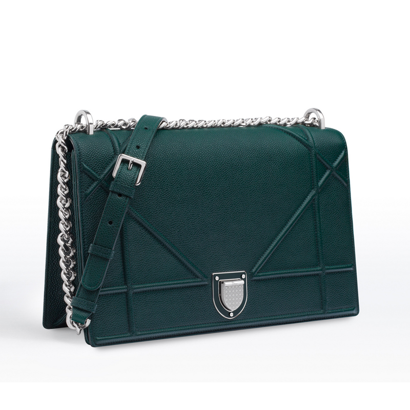 - Large "Diorama" flap bag in Deep Green grained calfskin