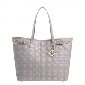The pure, practical, urban "Dior Panarea" collection includes a shopping bag.This large shiny mink-grey shopping bag is adorned with Cannage stitching. Practical and modern, its shape can be changed thanks to an inner clip system.