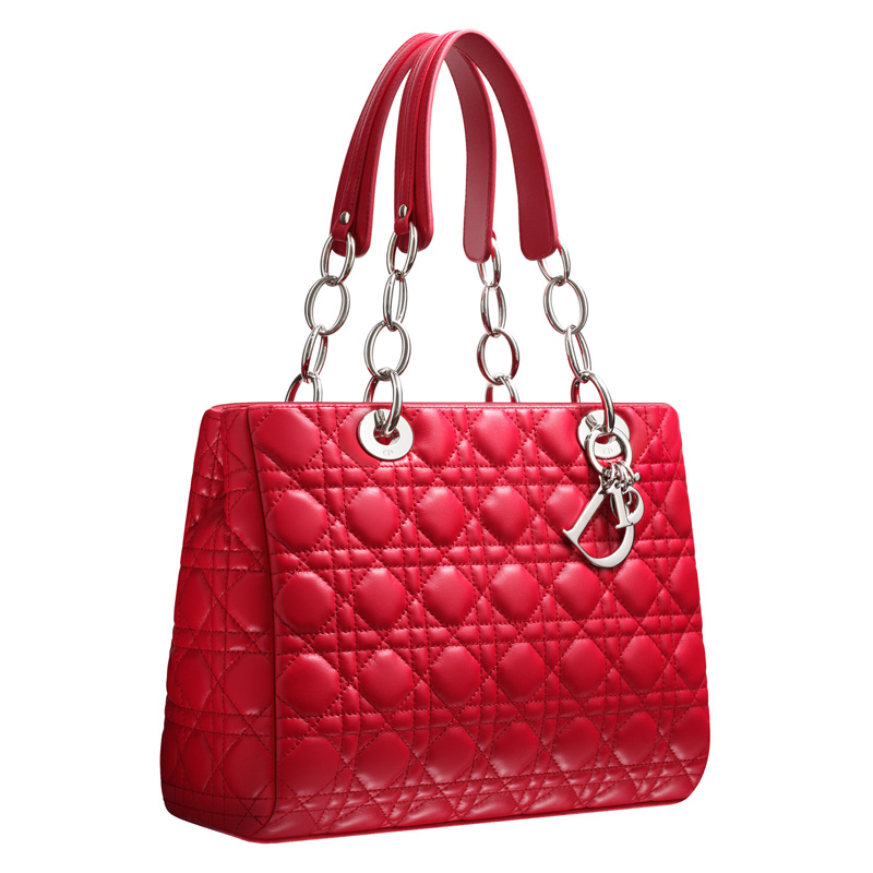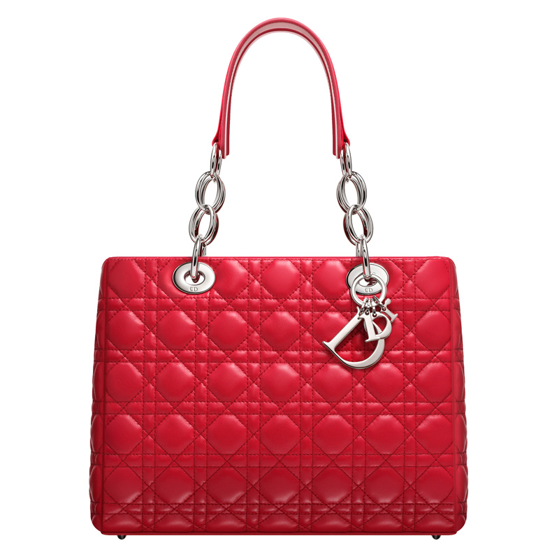 This crimson red lambskin shopping bag is distinguished by its Cannage stitching emblematic of Dior.