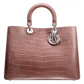 A true journey through the senses, an iconic line with timeless elegance that embodies all the craftsmanship of Dior. The exquisite crocodile leather, two handle options to carry in the hand or across the body, and the contrasting colours of the dusky pink outer and the purple inner make the 'Diorissimo' bag a unique model.