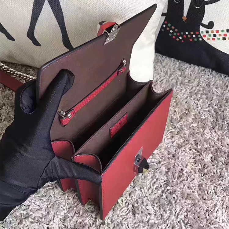 - Can be worn cross-body or carried in the hand thanks to the long sliding chain shoulder strap, complete with a leather insert