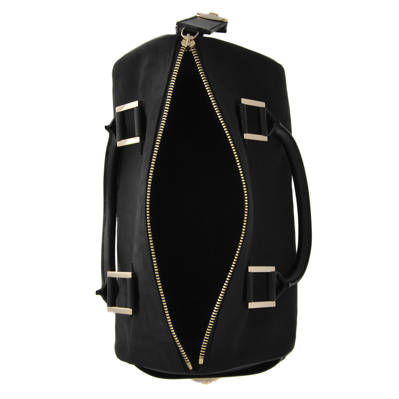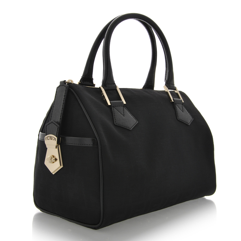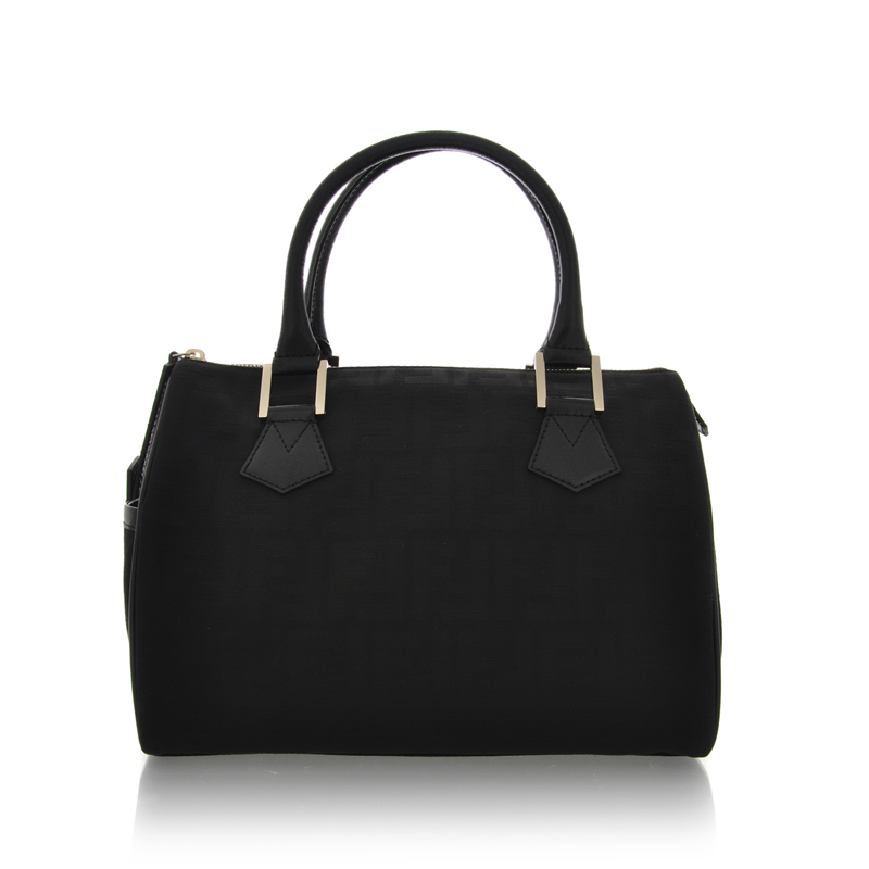 Impressive twin handle bag by Fendi. The CHEF ZUCCHINO Black Baulotto is made of Fendi's classic FF canvas in black color and has a top zip closure, black leather details and gold metallic hardware.