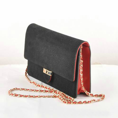 Fendi Toujour Gold Chain Clutch Suede 8M0291 Black