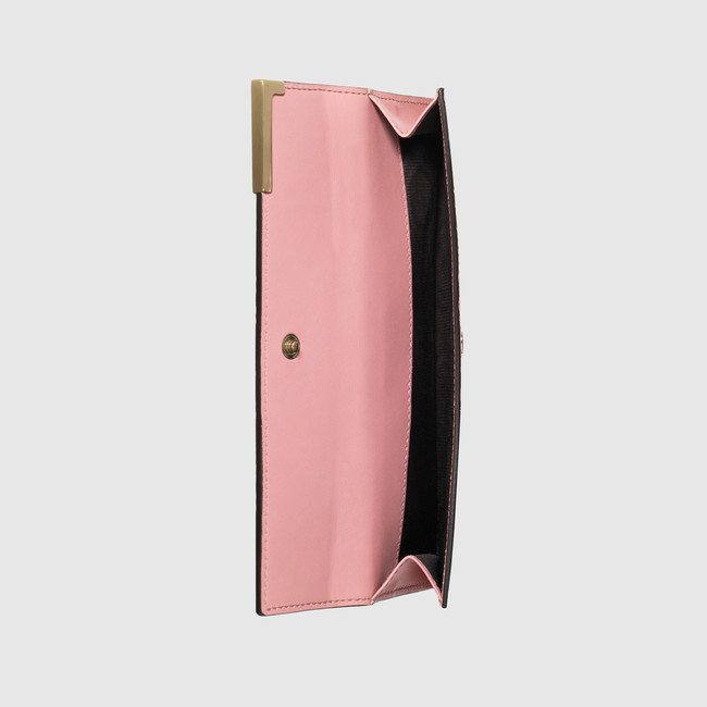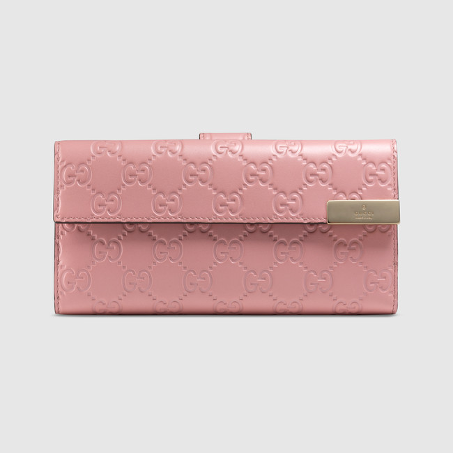 A continental wallet with a Gucci trademark metal plate in our embossed Gucci Signature leather.