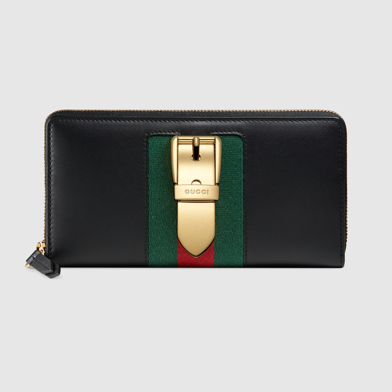 The Sylvie zip around wallet in a classic shape. The metal buckle closure was taken from the House鈥檚 archives, and is mixed playfully with the Web stripe. Made in a smooth, classic leather.