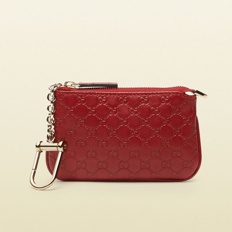 - red microguccissima leather with red leather detail- light gold hardware- 4.7"W x 2.8"H x .6"D