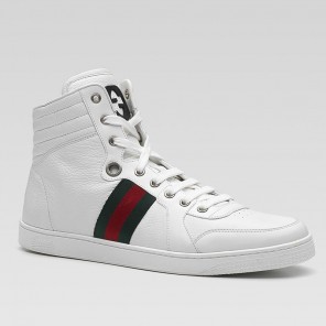 hi-top lace-up sneakers with interlocking G detail and signature web.