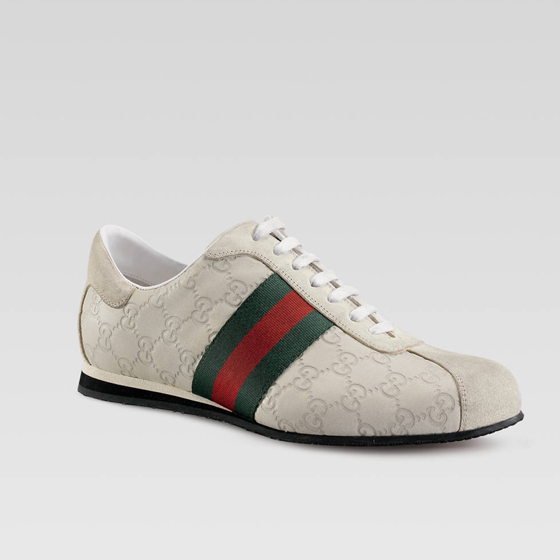- white guccissim leather- green/red/green web- round toe- rubber sole