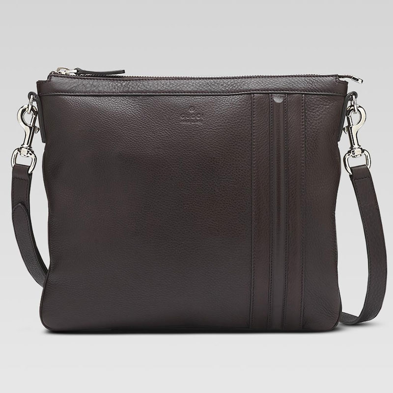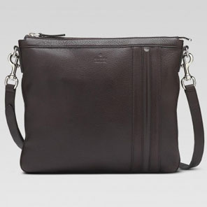 -brown leather-nickel hardware-adjustable and detachable shoulder strap-zip-top closure-inside zip, cell phone, and pda pockets