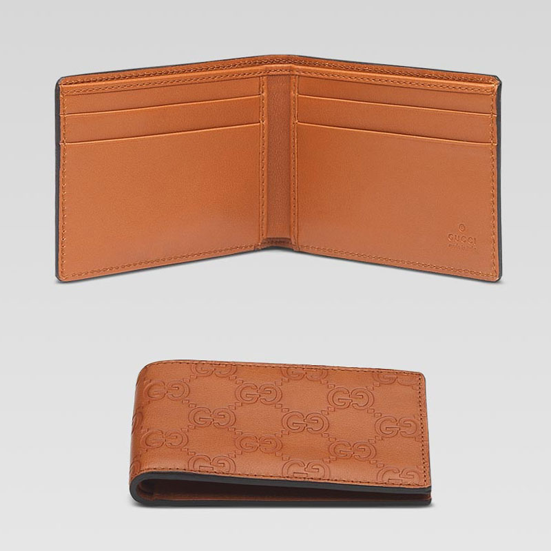 -orange guccissima leather with orange leather trim/interior-four card slots and one bill compartment