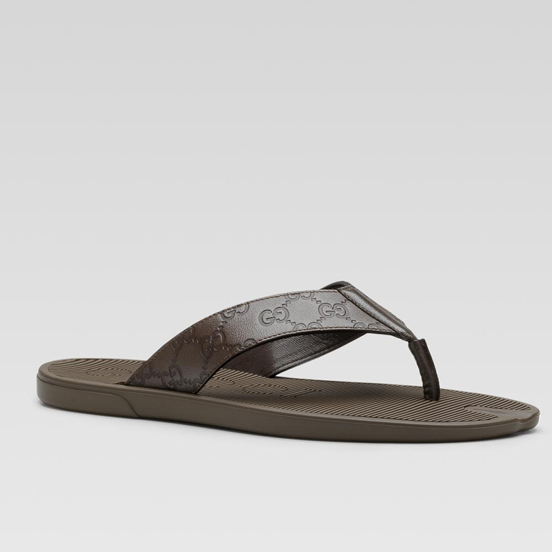 - brown guccissima leather with brown leather trim- split-toe detail- rubber sole