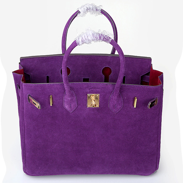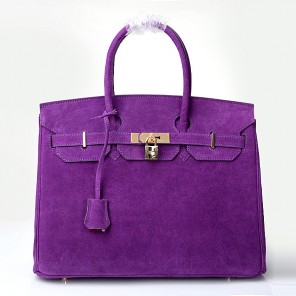 2014 Hermes Birkin 35CM Tote Bag Purple Nubuck Leather H35 Gold hardware