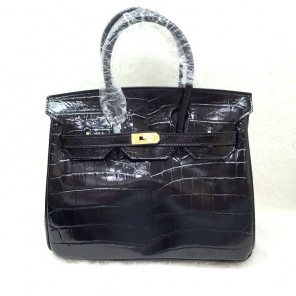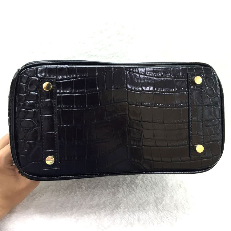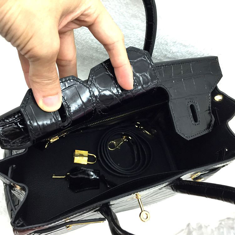 2015 Hermes Birkin 25cm Crocodile stripes Leather Handbag H25 Black