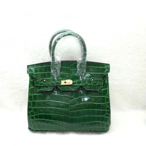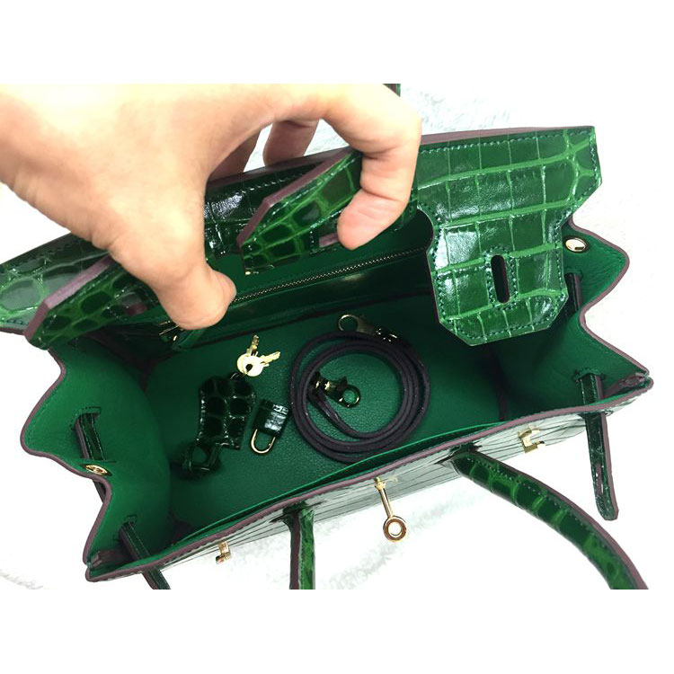 2015 Hermes Birkin 25cm Crocodile stripes Leather Handbag H25 Green