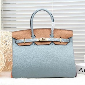 2015 Hermes Birkin 35CM Tote Bag Clemence leather H35 Light Blue
