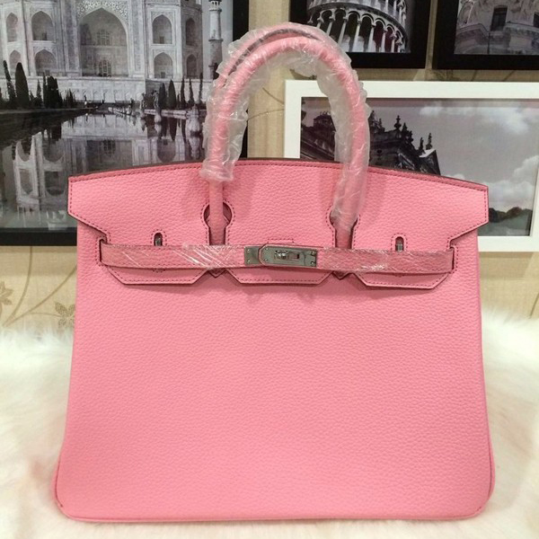 2015 Hermes Birkin 35CM Tote Bag Pink Grainy Leather H35 Silver
