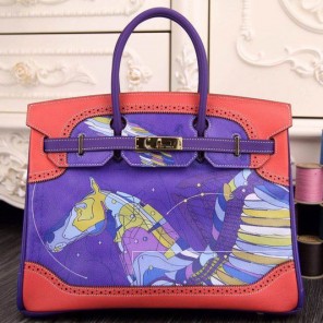 2015 Hermes Birkin 35CM leather and pierced Tote Bag Purple
