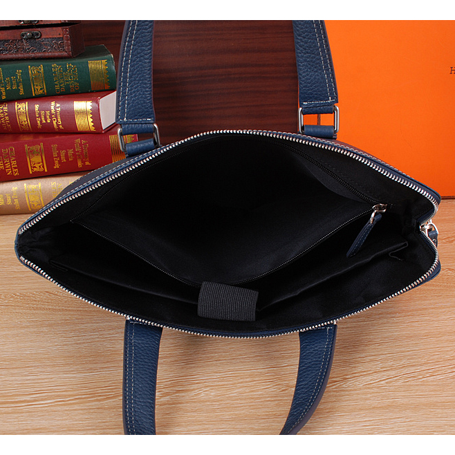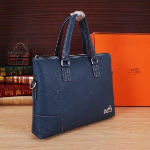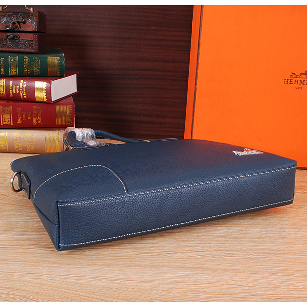 2015 Hermes Briefcase Grainy Calf Leather H8013 Blue