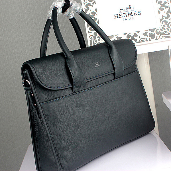 2015 Hermes Briefcase Original Calf Leather H8024 Dark Blue