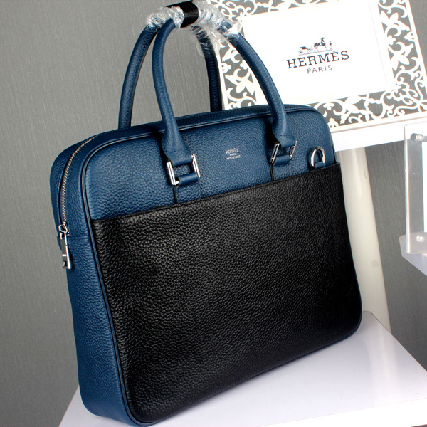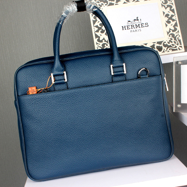 2015 Hermes Briefcase Original Grainy Leather H8021 Blue