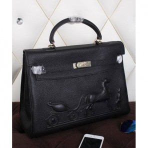 2015 Hermes Kelly 35CM Shoulder bag clemence leather in Black