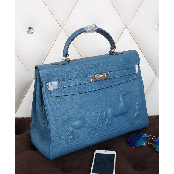 2015 Hermes Kelly 35CM Shoulder bag clemence leather in Blue