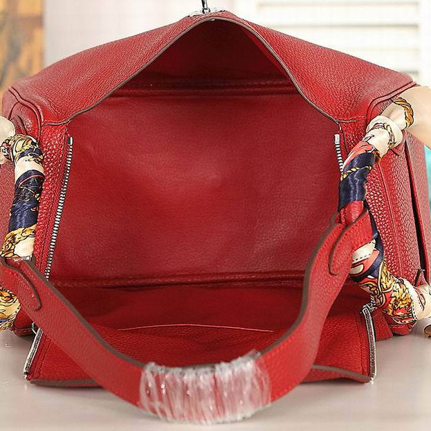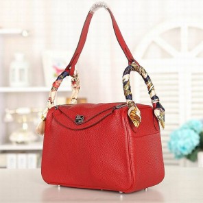2015 Hermes Lindy 30CM Original Leather Shoulder Bag H1057 Red in Silver