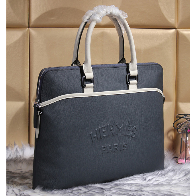 2015 Hermes Men Briefcase Original Calf Leather H3828 Blue