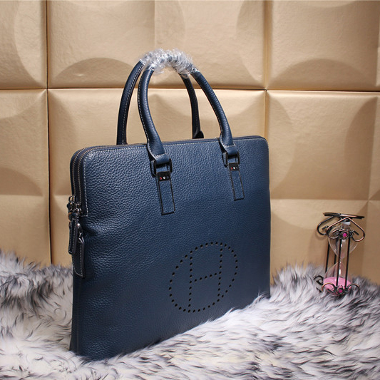 2015 Hermes Mens Briefcase Original Calfskin Leather H8011 in Blue