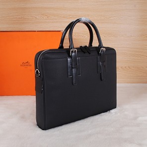 2015 Hermes Mens Briefcase Original Grainy Leather H511 in Black