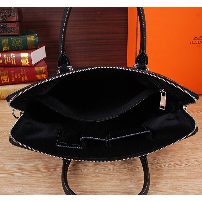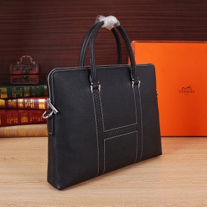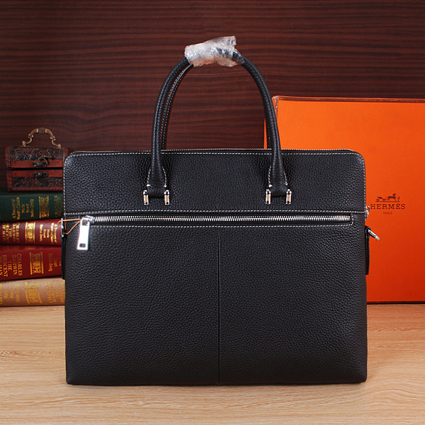 2015 Hermes Mens Briefcase Original Grainy Leather H8015 in Black