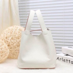 2015 Hermes Picotin Lock MM Bag in Clemence Leather H8616 White&Orange