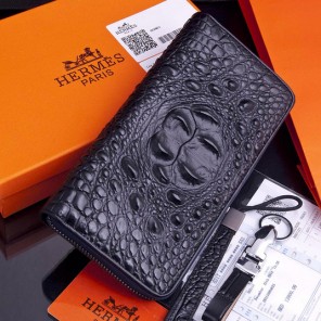 2015 Hermes Zip Around Wallet Original crocodile Leather H565 Black