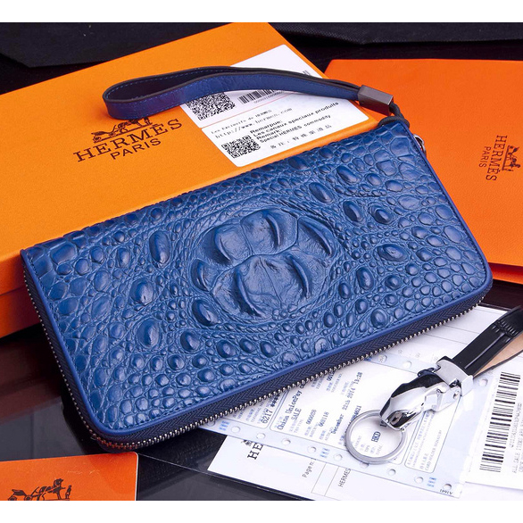 2015 Hermes Zip Around Wallet Original crocodile Leather H565 Blue