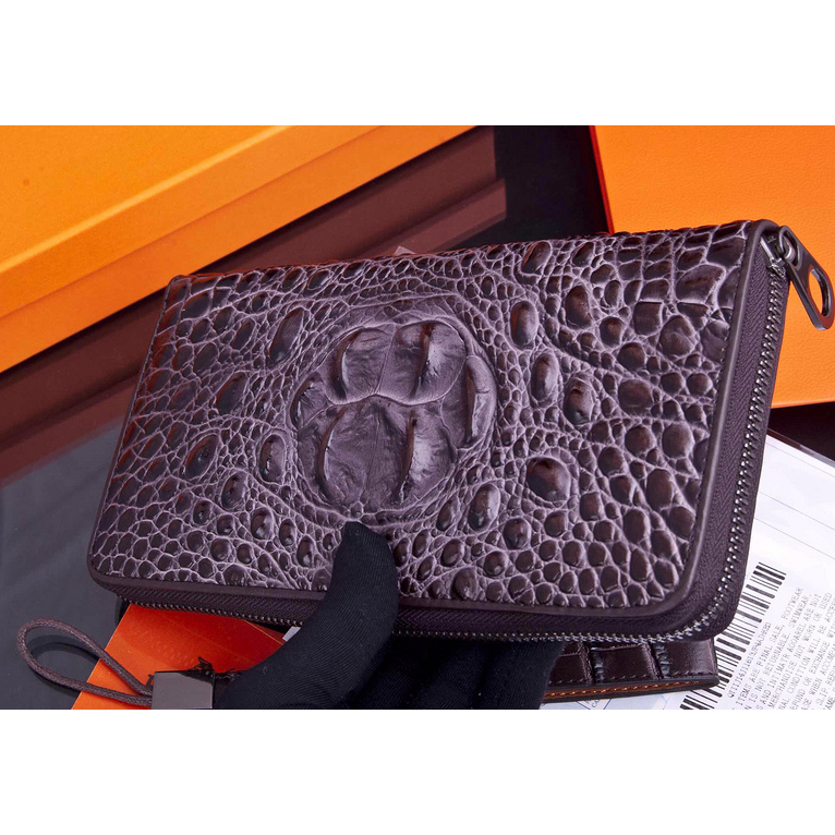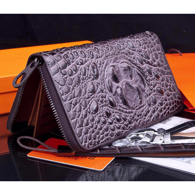 2015 Hermes Zip Around Wallet Original crocodile Leather H565 Gray
