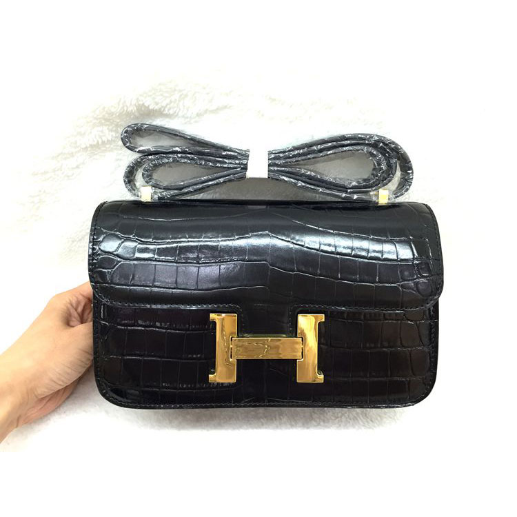 2015 Popular Style Hermes Constance Bag Crocodile stripes Leather H9998B Black