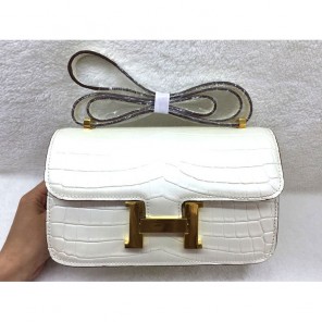 2015 Popular Style Hermes Constance Bag Crocodile stripes Leather H9998B White