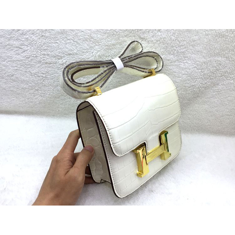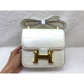 2015 Popular Style Hermes Constance Bag Crocodile stripes Leather H9998S White