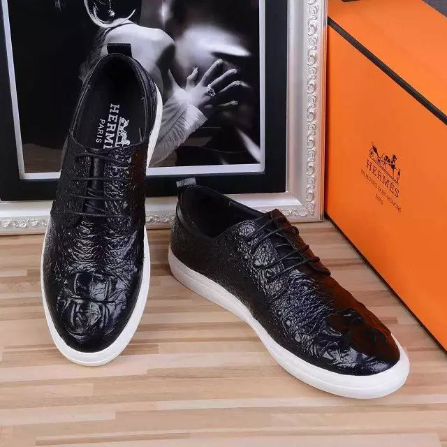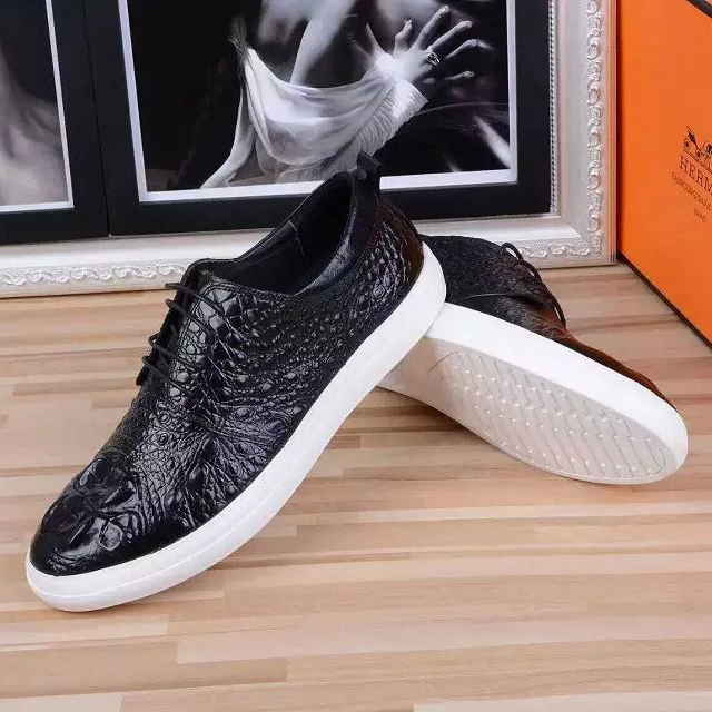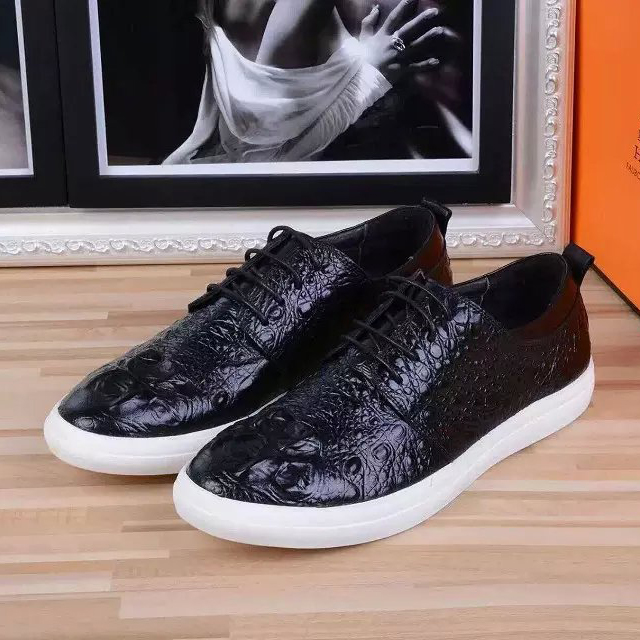 2016 Hermes Crocodile Stripe Calfskin leather men Casual shoes