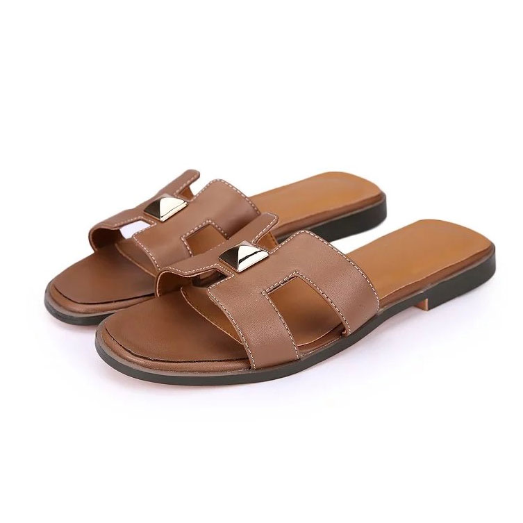2017 hermes women Slippers in leather with rivet