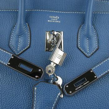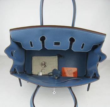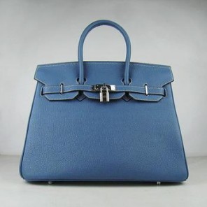 Hermes 35CM Middle Blue Cowhells Stripe (silver)