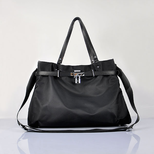 Hermes 2012 Waterproof Fabric Shoulder Bag Black