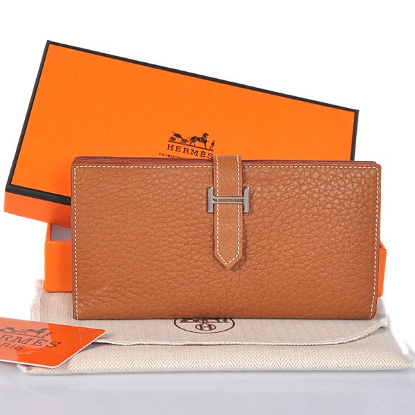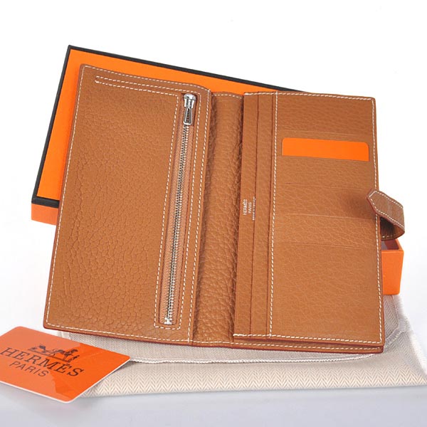 Hermes 2 flod original clemence leather wallet in Camel Come with Hermes authenticity card, Hermes tags,Hermes wallet dust bag, Hermes wallet box and Hermes care booklet.